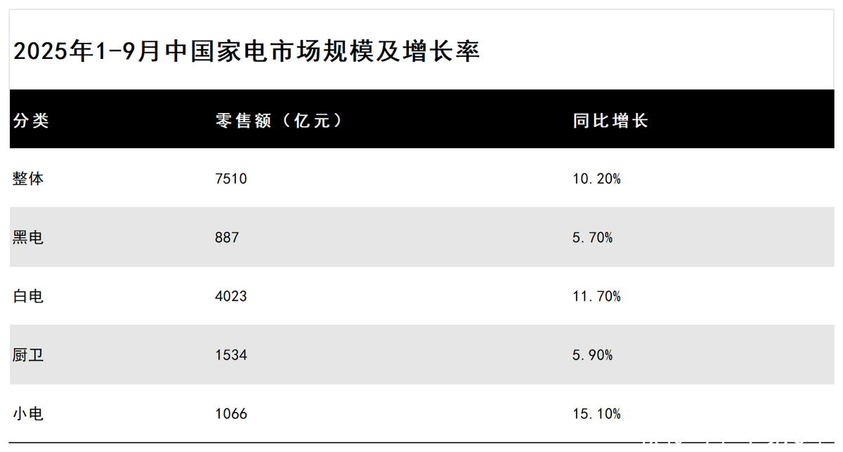 《2025中国高端家电市场趋势及创新洞察》进一步指出,2025年前9个月,厨电品类5.9%的增速不仅低于家电行业10.2%的平均水平,更显著落后于小家电15.1%的增速,大厨电增长乏力问题愈发突出。