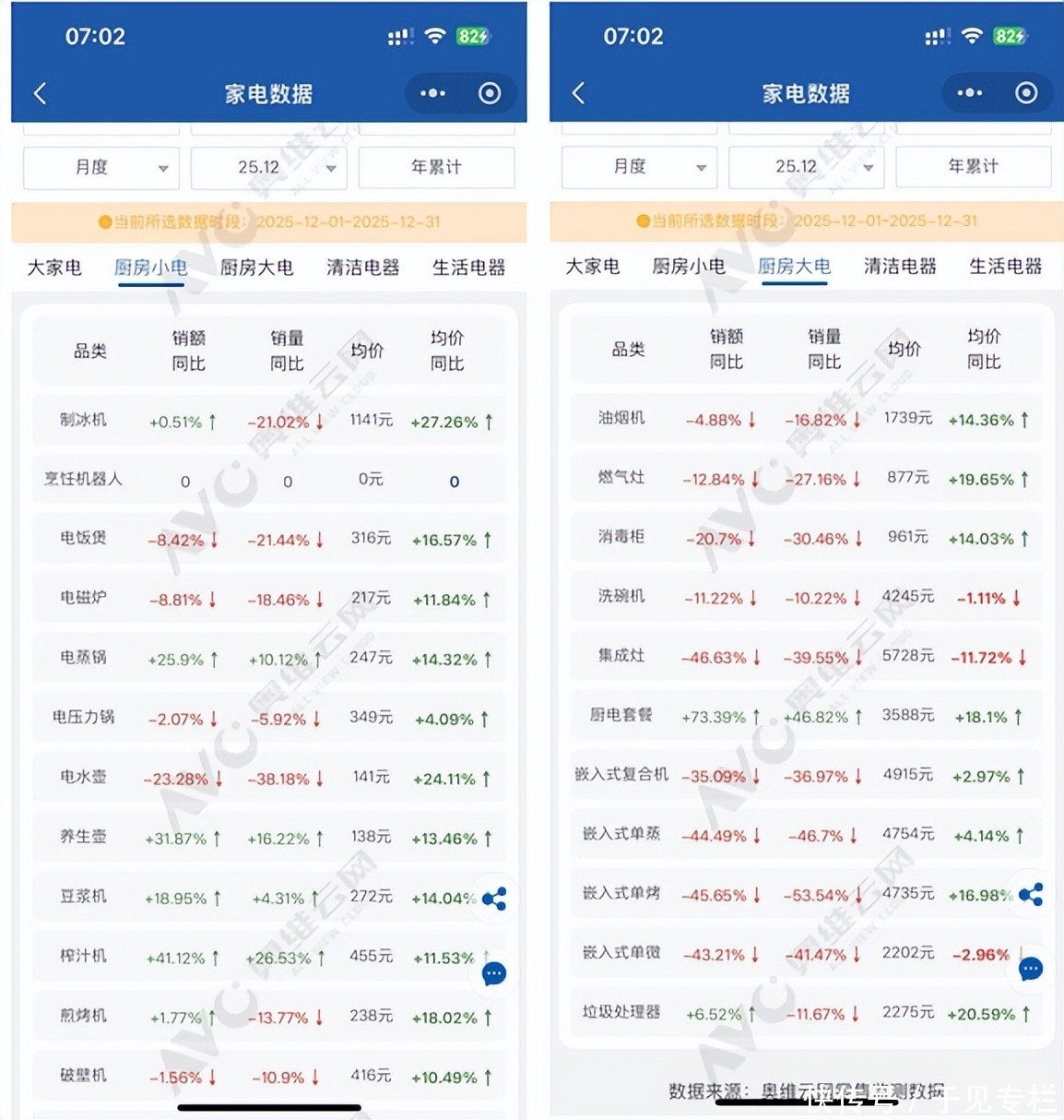 这种品类分化在2025年12月国补断档期表现得尤为极致。线上渠道中,大家电里仅厨电套餐实现销额、销量、均价三项正增长,其余品类均出现不同程度下滑;反观小家电,电蒸锅、养生壶、豆浆机等多个细分品类同步实现三项指标正增长,成为市场增长亮点。
